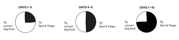 Discouraged by these realities and the alarming rise in pet allergies, obesity, and cancer, we created a common-sense alternative. Whether you opt for our Fresh or UnKibble recipes, Spot & Tango always excludes the junk you'll commonly find in pet foods. It's made from only whole ingredients that you'd eat yourself. Our meals are prepared with love, using gentle cooking methods to preserve nutrients and palatability. Spot & Tango is enjoyed by all kinds of dogs, from seniors, picky eaters, and sensitive stomachs to vibrant puppies!